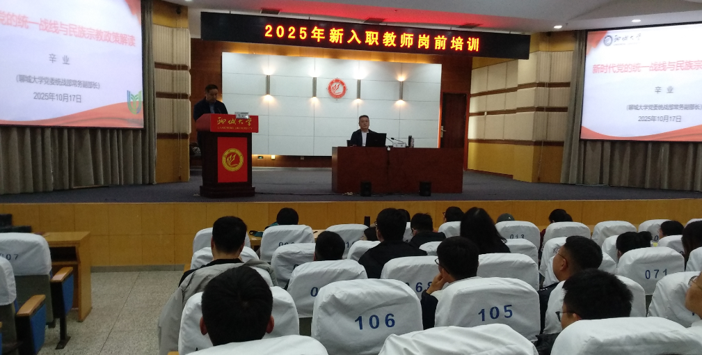 为加强新入职教师对新时代党的统一战线理论和政策的理解,增强思想政治引领,提升立德树人使命感,10月17日下午,学校党委统战部常务副部长、台港澳工作办公室主任辛业应邀为2025年新入职教师岗前培训作题为《新时代党的统一战线与民族宗教政策解读》的专题报告。